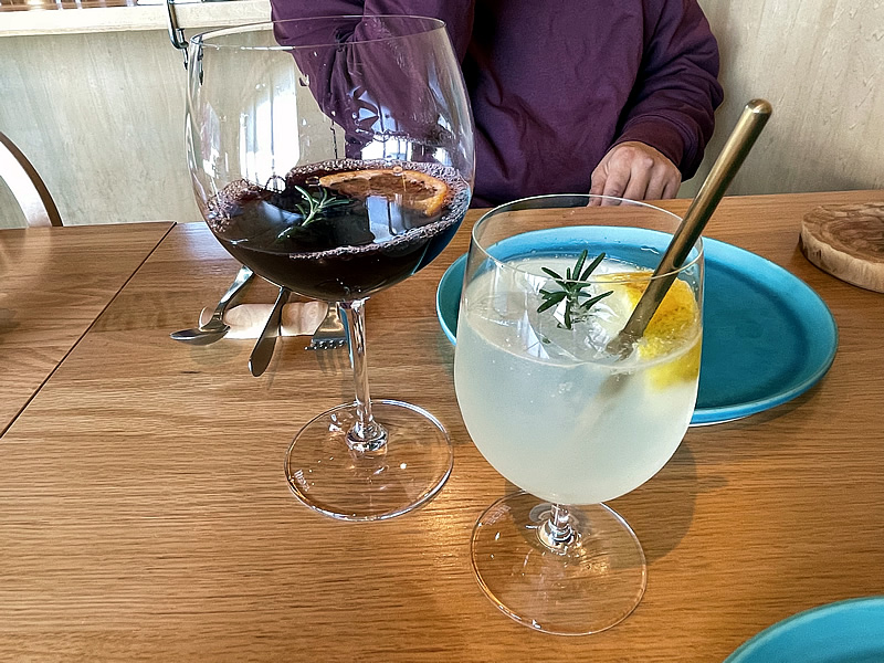お酒が飲めない私達には、こちらのノンアルコールドリンクが美味しくて、選ぶ楽しみがあります。この日は7種類。まずは「自家製シロップの直七ソーダ」と「明郷園産の和紅茶&スパイス風味の赤葡萄ジュース」をチョイス。