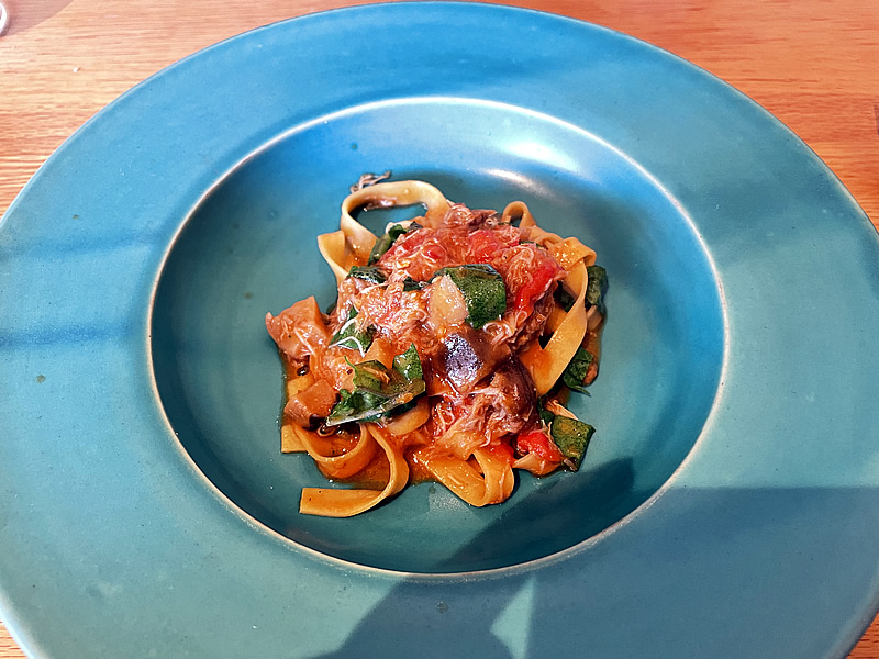 5.「タリアテッレ 渡り蟹とポルチーニ茸」特にこれが気になってました。タリアテッレはきしめんのような平打ちのパスタ(自家製)です。土佐市宇佐産の渡り蟹とヨーロッパ産のフレッシュなポルチーニ茸を合わせたソースは、輝いているようです♪