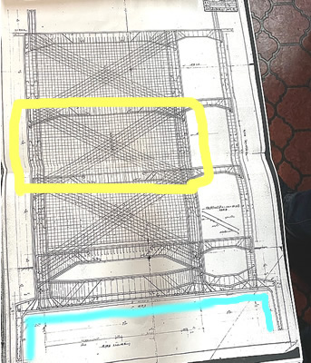 さらに、壁には×のように斜めの鉄筋が何本も入っています。(下の黄色い部分)