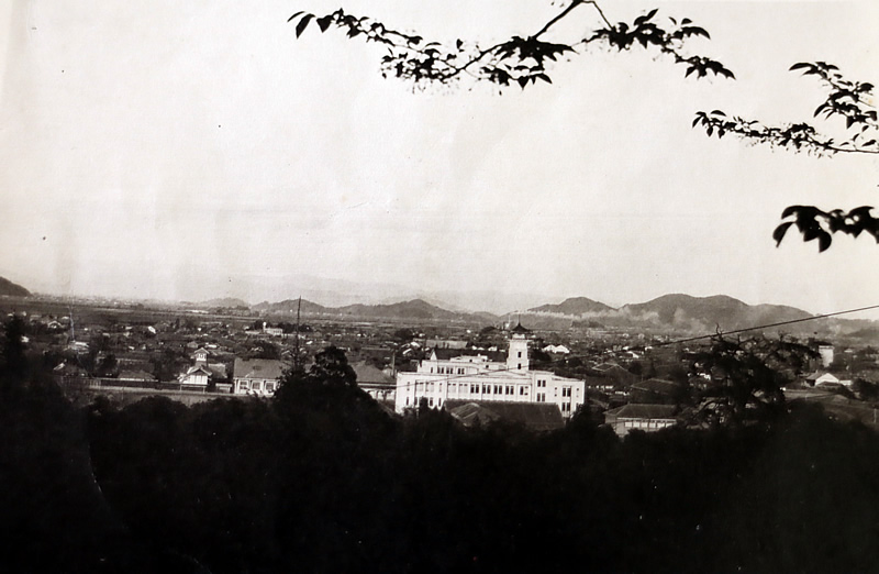 昭和6年から20年頃に高知城から撮影された写真を見ると、当時は高い建物がほとんどありません。