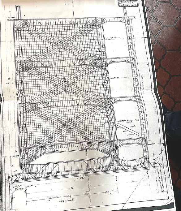 「筋交い(すじかい)みたいに斜めに入れて変形を防ぐんでしょう。合理的ですが、工期は延びますよ。これは本当に珍しいと思いますね」
