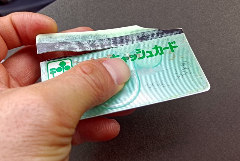 ここまでザックリ行くとATMで使う際も「これ以上、割れないように」と、とても丁寧に扱うようになったそうです。そして最近のこと、とうとうATMでは使えなくなったと。